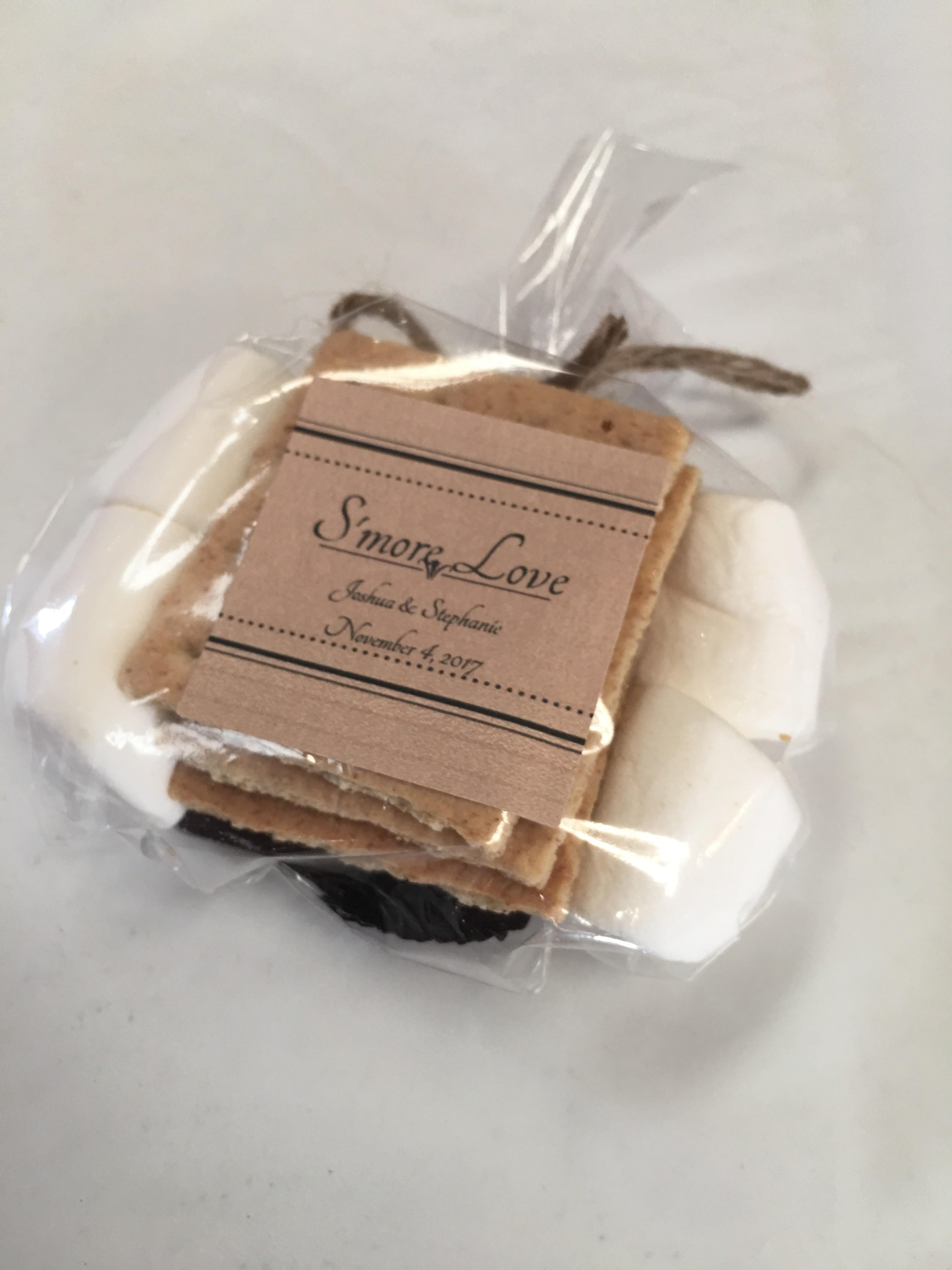 -Other Ideas: Besides food and candy, here are a few other suggestions to slip into the goodie bag: personalized pop or beer can cozies, mason jars, golf balls, scented soap, candles, playing cards, mints, etc. Things like these are pretty cheap and can add some charm to the bag. Check out this blog on theknot and instyle for more ideas! And check out this pinterest page for ideas on what the actual bag can look like.